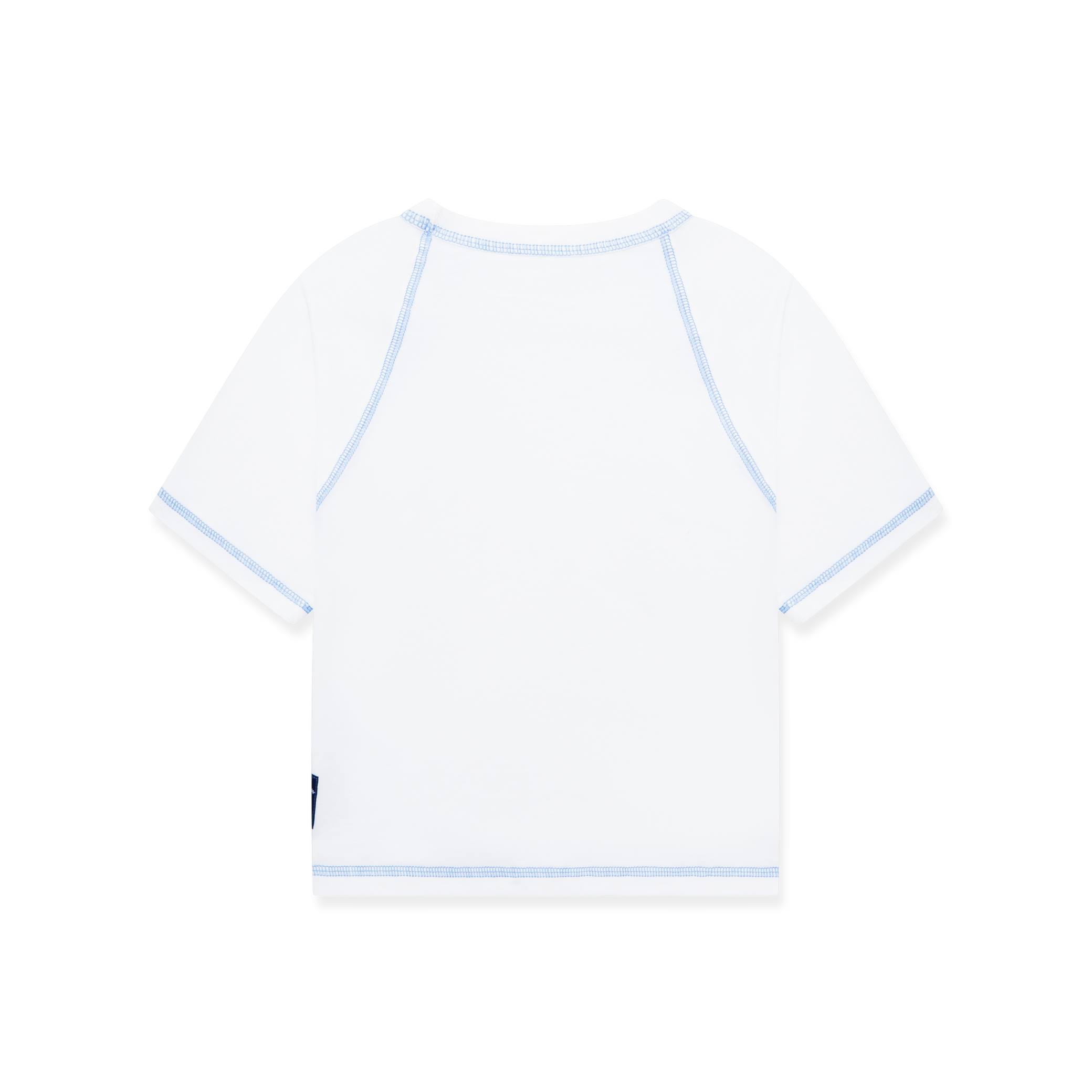Open media in modal White raglan t-shirt with blue contrast stitching and a blue exterior woven label sewn to the left side Open media in modal White raglan t-shirt with blue contrast stitching and a blue exterior woven label sewn to the left side Open media in modal Woven label with 'Play for a Better Tomorrow' text and 'Blue Jogiel' logo and soccer ball sewn onto a white garment on the seam. Open media in modal Child wearing a Blue Jogiel white raglan t-shirt with blue contrast stitching Open media in modal Child wearing a white raglan t-shirt with blue contrast stitching 1 5